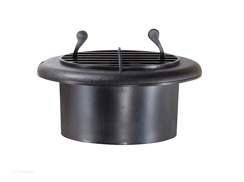 Heating/ Cooling Register; Round; 4 Inch Mounting Collar Diameter; 5 Inch Overall Diameter; 2-1/4 Inch Depth; 360 Degree Rotation; With Damper; Black; ABS Plastic
