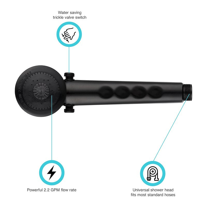 Shower Head; Hand-Held; Black; Water Saving Trickle Valve Switch On Shower Head