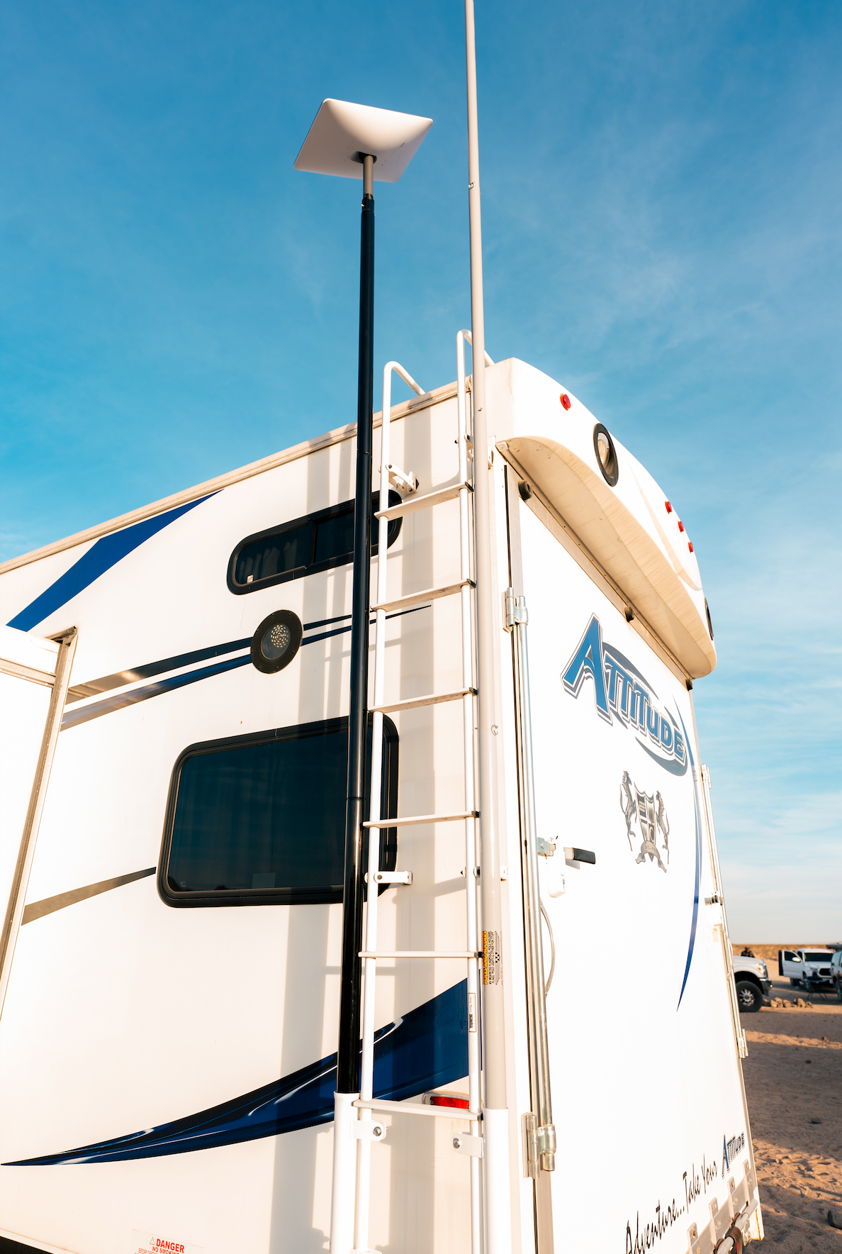 Introducing the Poles and Holders Starlink Mount for Gen 2: Your Universal Solution for Starlink Installation! Our innovative steel pole system is designed to seamlessly attach your Starlink into any of our 22' holders. It's as easy as taking our precision-crafted billet aluminum adapter, connecting it to your Starlink device, and effortlessly sliding it onto our sturdy powder-coated pole. The included pins ensure a secure fit.
