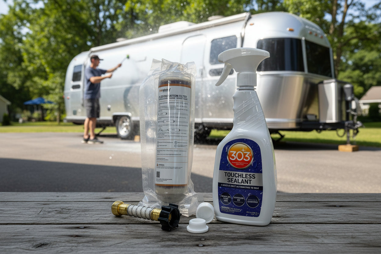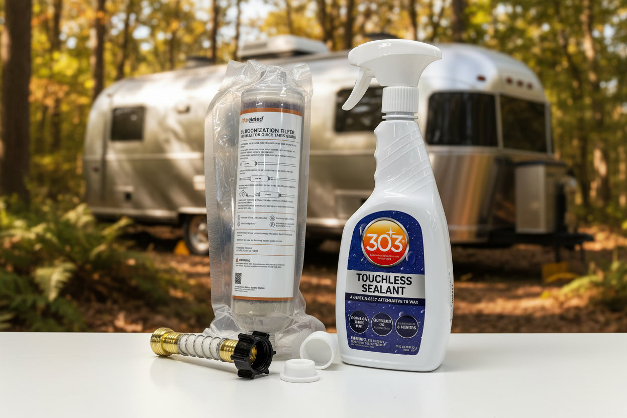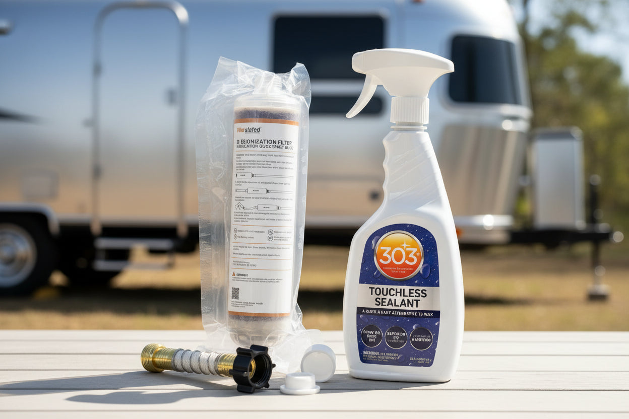 Achieve a spotless finish on your Airstream or motorhome with this professional-grade cleaning system. Designed to eliminate water spots and mineral deposits, it delivers streak-free results on aluminum, windows, and chrome surfaces. The system works by filtering water to remove impurities that typically cause spotting, making post-wash drying faster and easier. Ideal for maintaining your RV's pristine appearance between deep cleans or after rainy weather. Keep your investment looking showroom-ready with minimal effort.
