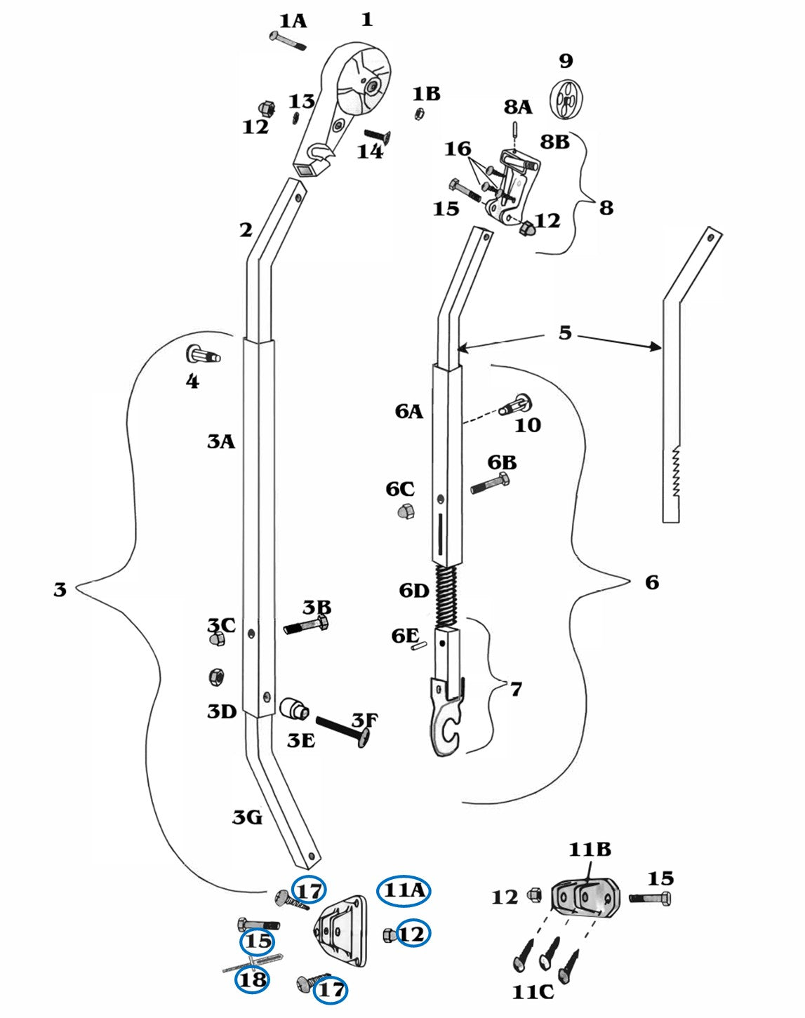 - (1) 310010 Zip Dee 1/4-20 x 1-5/8" Hex Head Bolt #15