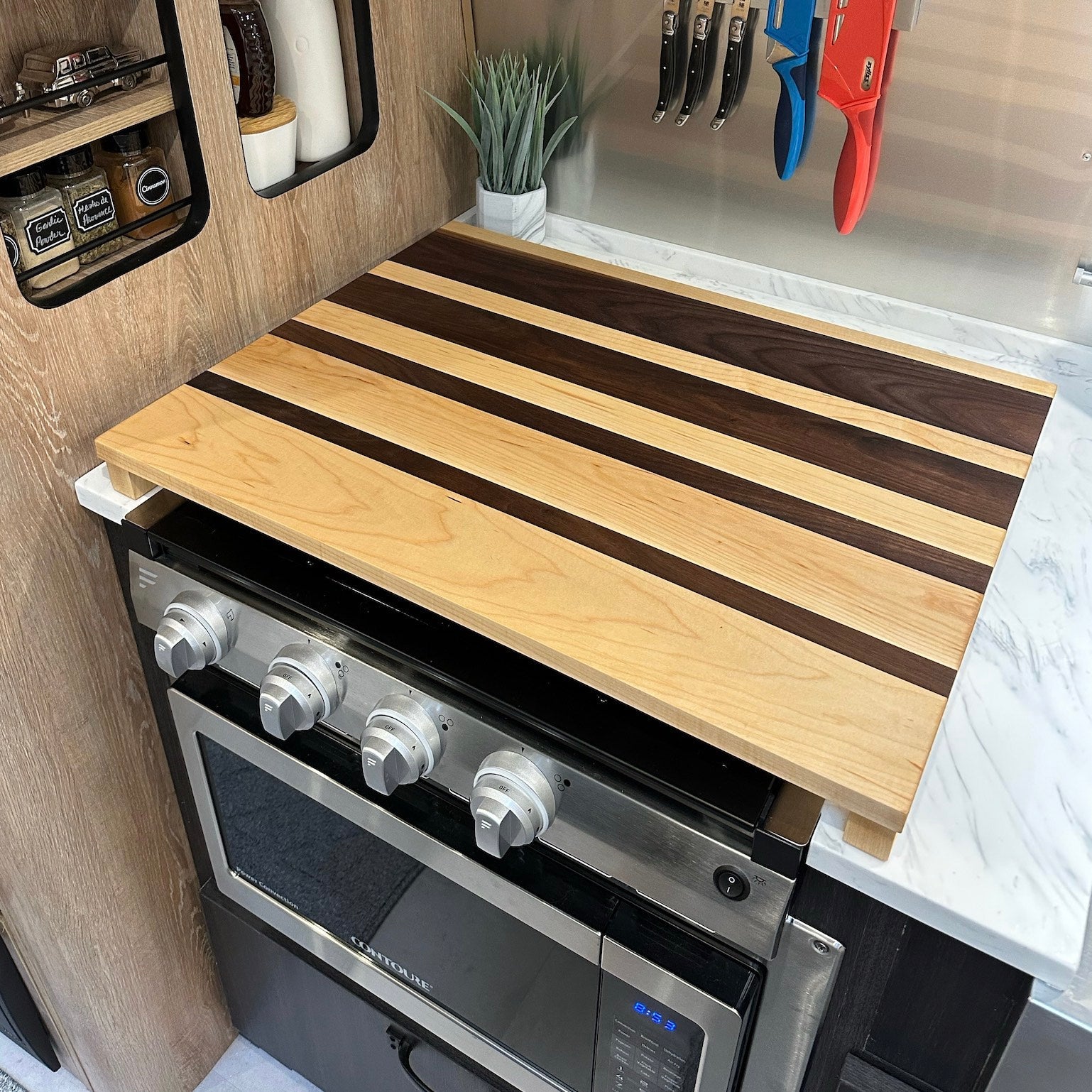 Ever wish you had more food prep space? Most of us Airstreamers would answer a resounding "yes." With this cooktop cover, you'll immediately ADD 3 SQUARE FEET of prep space.
