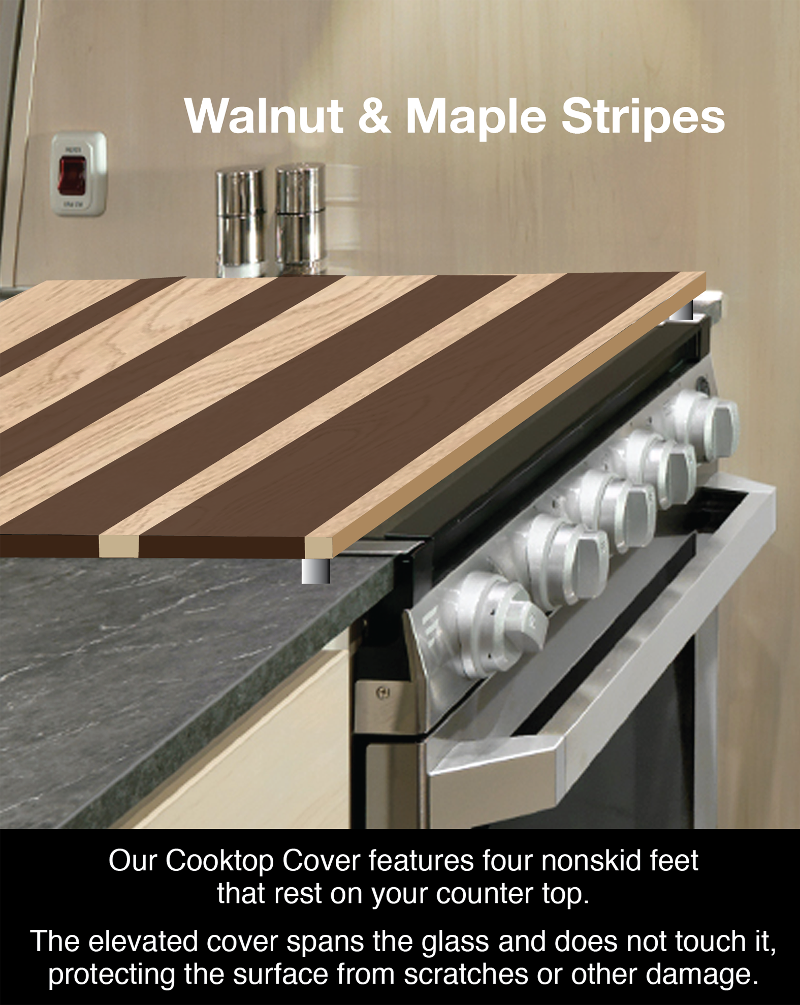 • NEW: Mahogany "Wooden Boat" style: This cooktop cover brings to mind the classic Chris Craft® design using premium African mahogany paired with thin stripes of white maple for that runabout look. Mahogany has a warm reddish-brown hue that exudes elegance and sophistication.