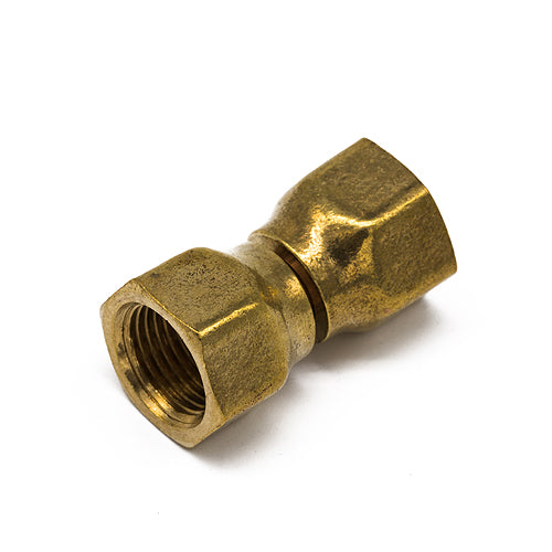 3/8" brass swivel nut with 5/8-18" threads, 3/8" flare tube outer diameter, and temperature range of -65° F to +250° F. These products contain lead and are not allowed by Federal Law to be installed for potable water use in the U.S.A. and its territories.