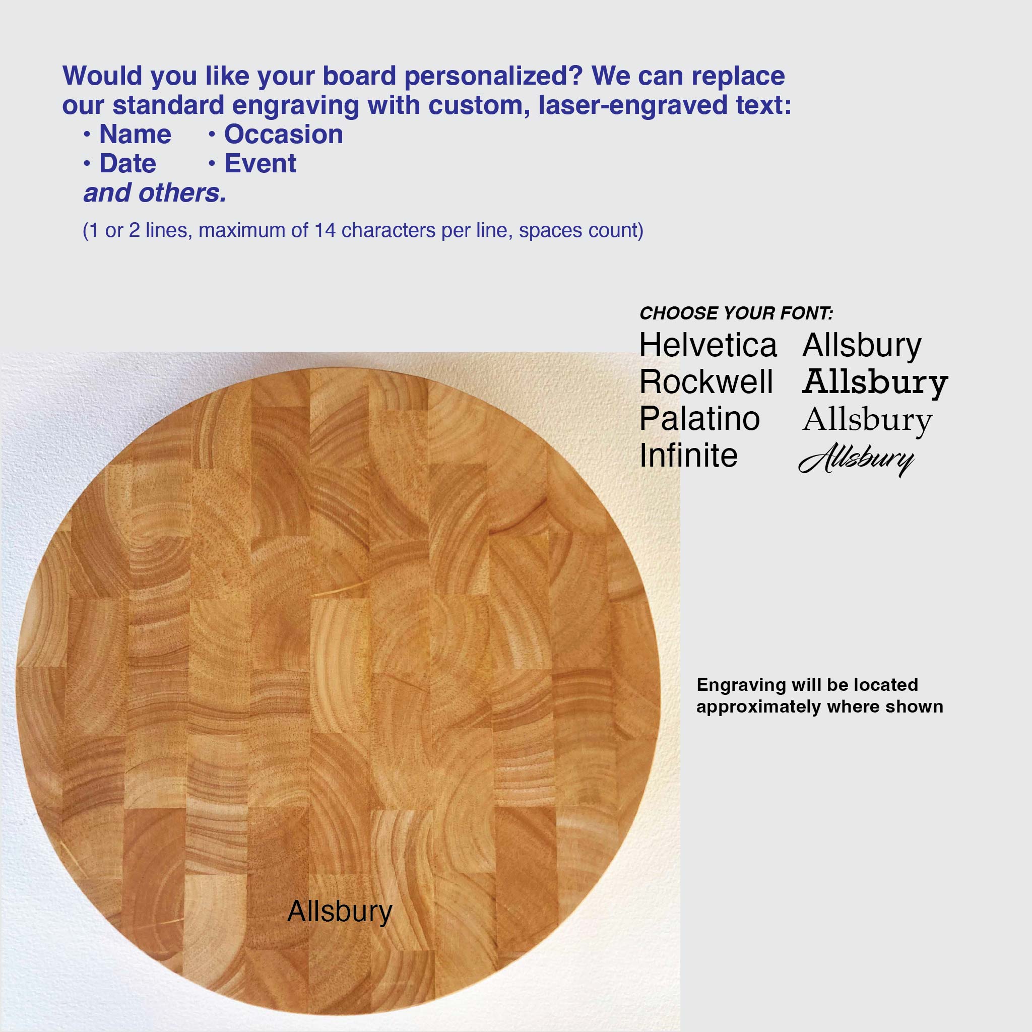 • Just-right-size 13" diameter (easy-to-store in an Airstream) and a massive 1-1/2" thick (very stable and won't warp like thinner boards)