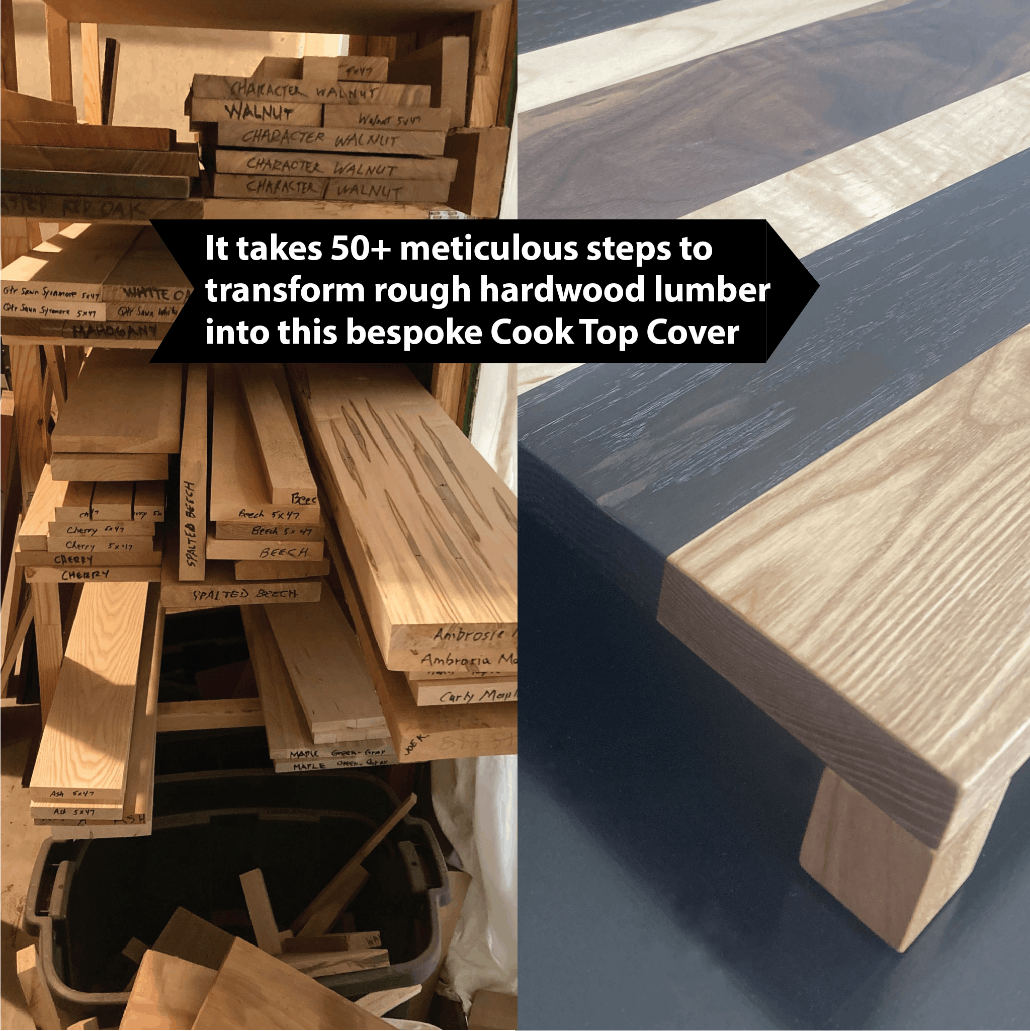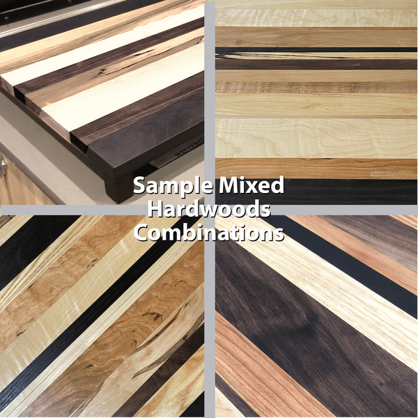 2. Mixed Hardwoods, we'll choose several species from ash, cherry, hard white maple, walnut and other domestic/exotic woods like ambrosia maple, beech, hickory, purpleheart, sycamore, yellowheart and more