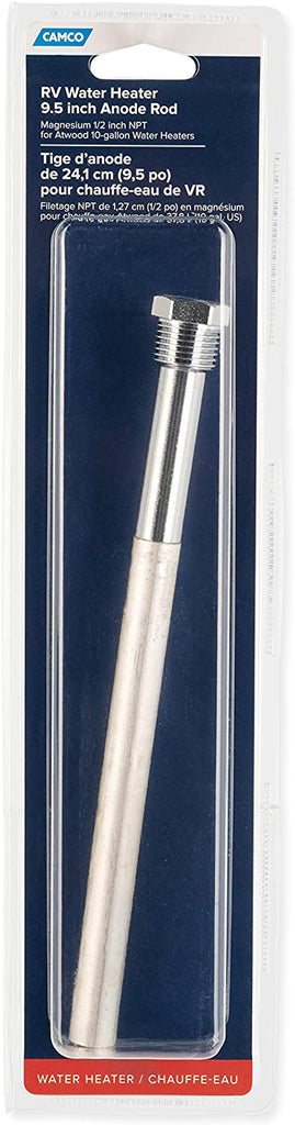 Water Heater Anode Rod; For Atwood 10 Gallon Water Heaters; 9-1/2 Inch Length x 0.6 Inch Diameter x 1/2 Inch NPT; Magnesium; Without Drain