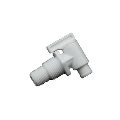 Fresh Water Tank Drain Valve; Dual Hose Size To Fit 1/2 Inch or 3/4 Inch; With 3/8 Inch and 1/2 Inch Male NPT Thread; Without Evacuation Flange; Plastic; Single