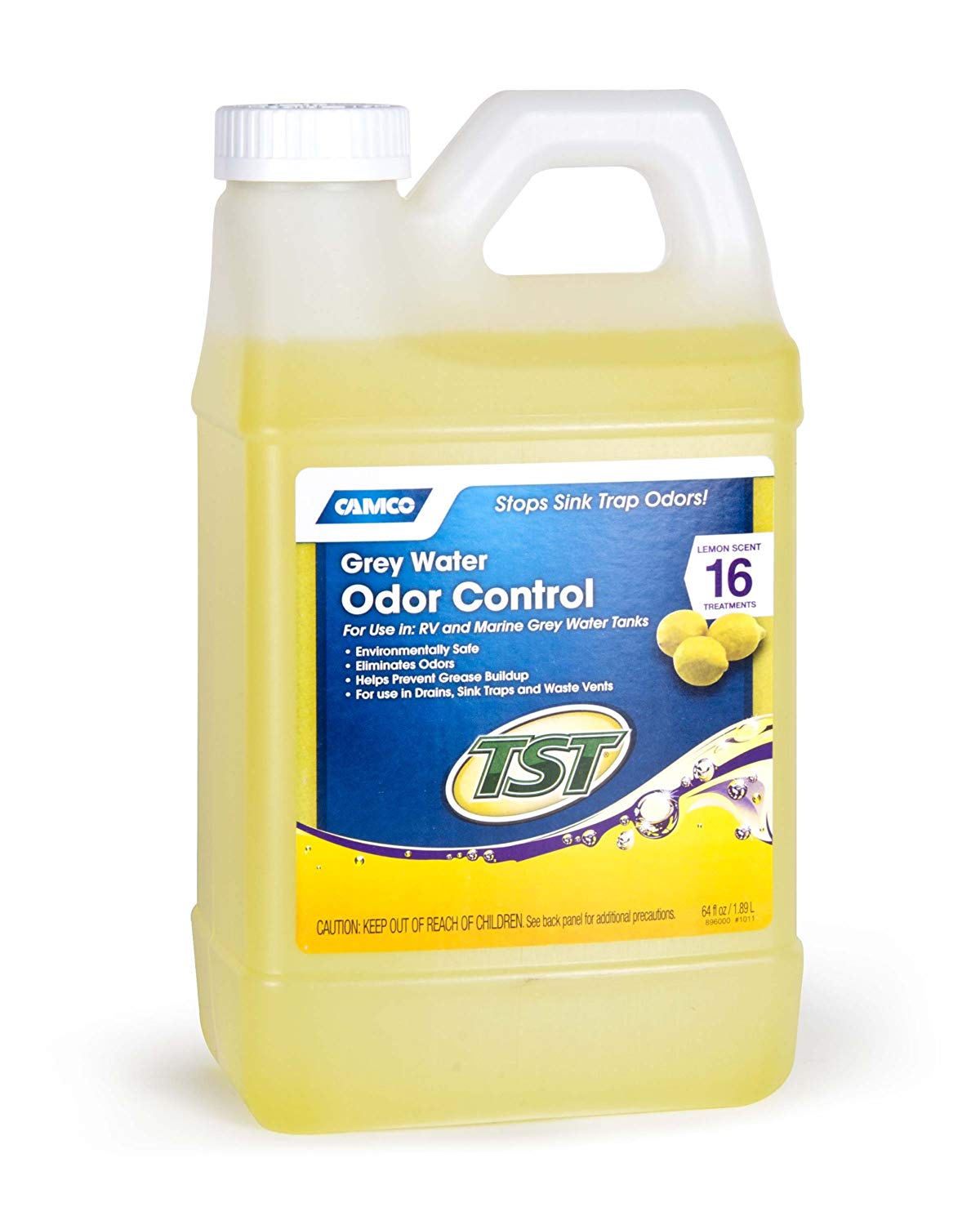 Stops sink trap odors. For use in RV and marine grey water tanks. Environmentally safe. Eliminates odors. Lemon fresh scent. Helps prevent grease buildup. For use in drains, sink traps, and waste vents.