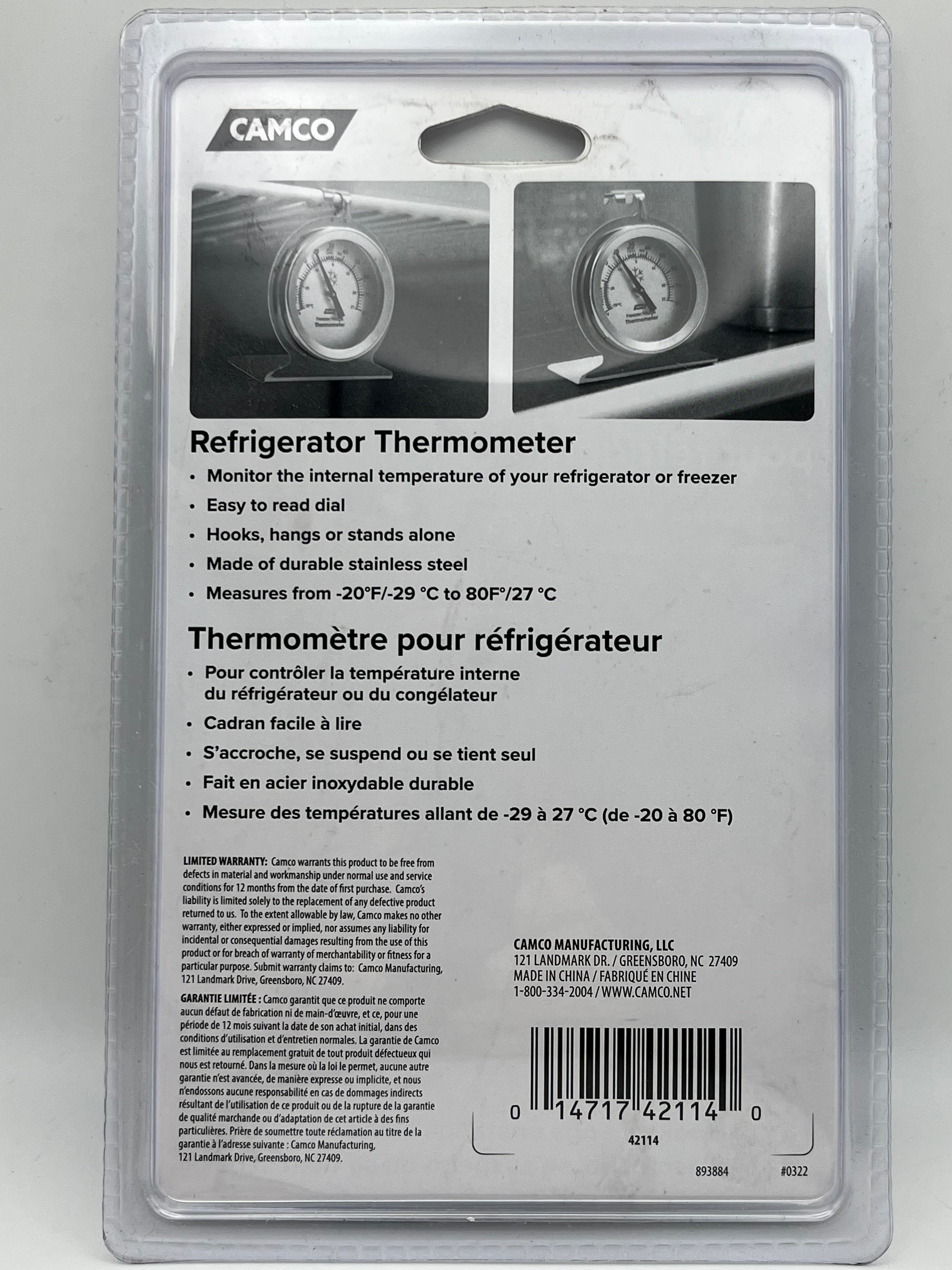 Thermometer; Use To Measure Refrigerator Temperature; Analog Display; Mounted; Silver; Stainless Steel; Single
