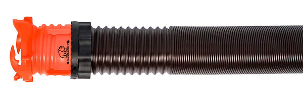 This 5' sewer hose extension features 23 mils of heavy-duty polyolefin reinforced with steel wire, locking rings, and 360 degree swivel fittings. The RhinoFLEX hose clicks into the shape you want and remains rigid. It's tested down to -40 degrees F and fits in a 4-inch RV bumper.