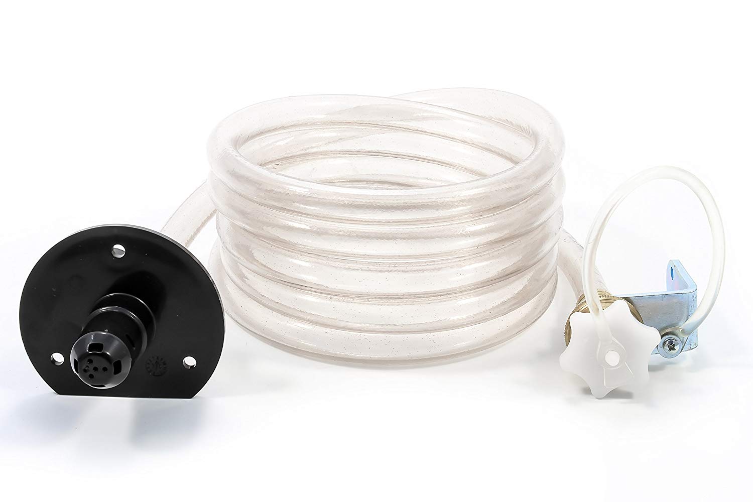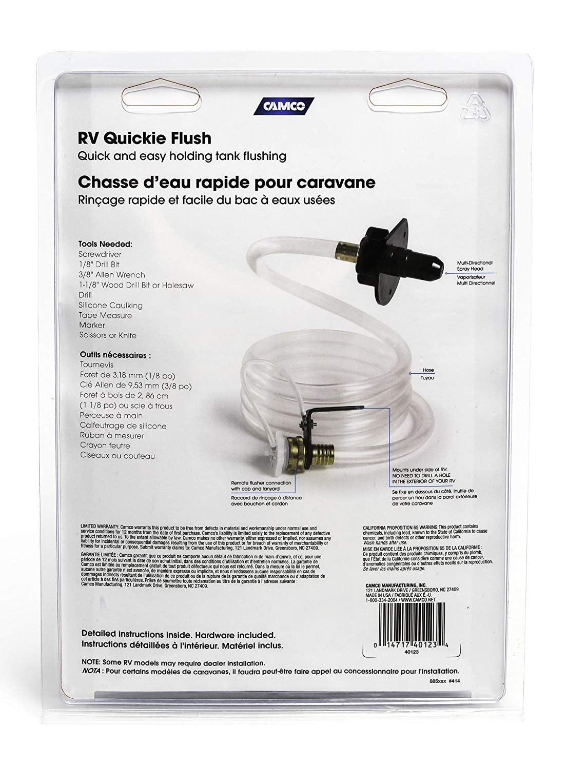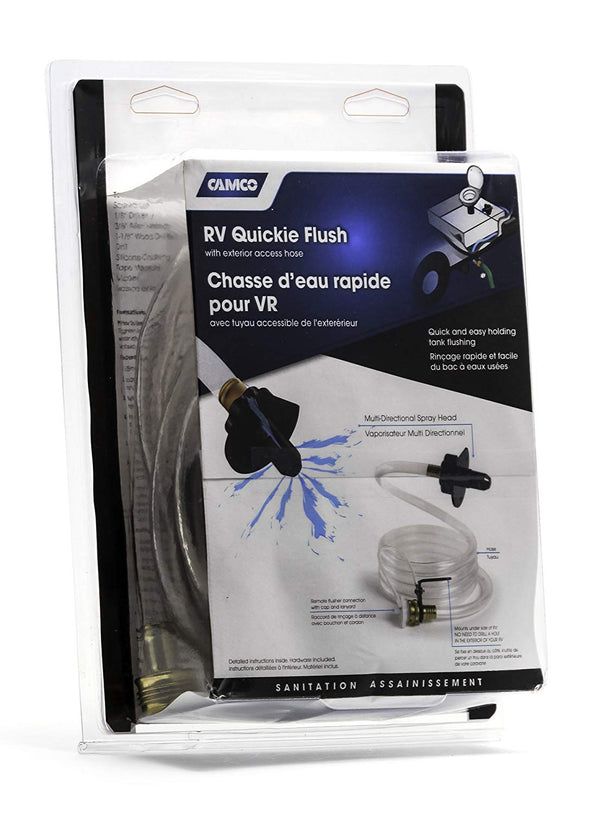 Multi-directional spray head Mounts under side of RV; no need to drill a hole in the exterior of your RV