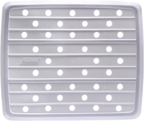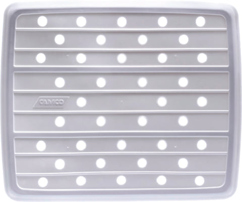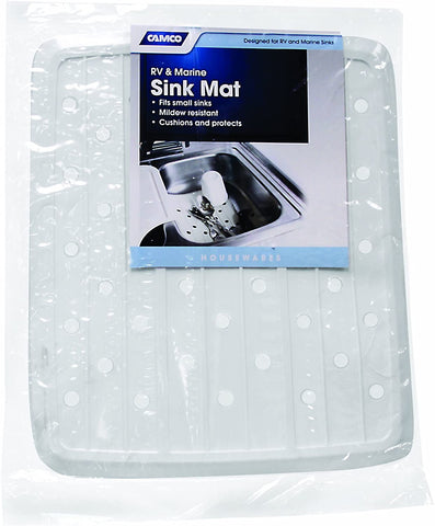 Specifically engineered for RV & Marine sinks. Soft flexible design cushions and protects glassware and plates. Multiple drain holes allow water to flow freely through mat. Mildew resistant.