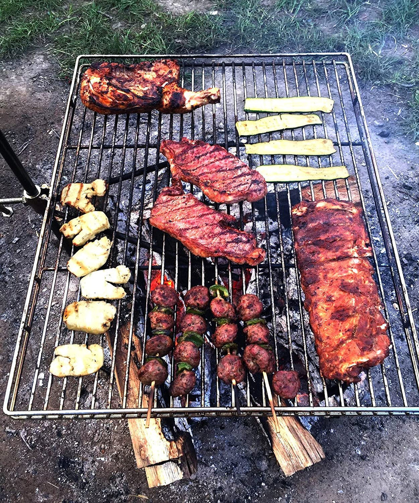 Campfire Grill; Original; Extended Arm Style; 20 Inch Width x 25 Inch Length Rectangular Grilling Surface; With Grilling Rack/ 2 L-Shaped Screws/Two-Piece Stake/Hot Pad And Glove/ Carrying Bag