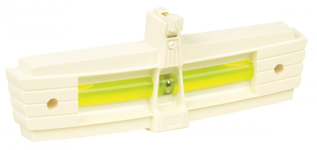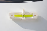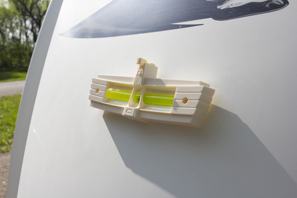 Owner calibrated level; indicates side-to-side level. Rear view level for 5th wheel trailers. Watch in the rear view mirror, the ball indicates level.