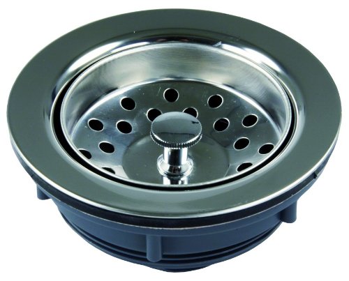 Large strainer and push-in basket. Fits any 3 1/2" to 4" sink opening. Constructed of durable plastic Includes strainer, rubber washer, and locknut.
