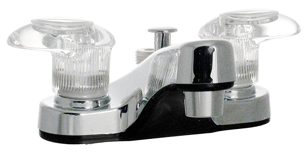 4" lavatory diverter faucet with acrylic handles, non metallic one piece body, washerless valves, and outlet for hand-held shower