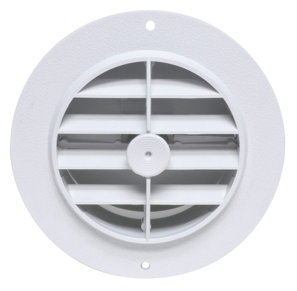 This rotating ceiling or interior base register with damper rotates 360 degrees and is made of ABS plastic.