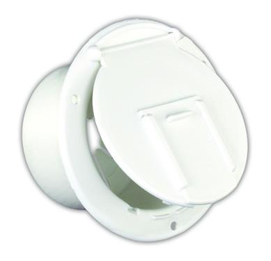 This cable hatch is a direct OEM replacement for any round hatch up to 4 1/2". The vermin door accepts both 30 and 50 Amp cord, and the door has a "snap-lock" feature. The material is paintable, UV and impact resistant, and road salt and acid resistant.