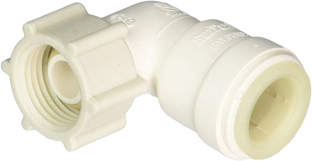 Fresh Water Adapter Fitting; AquaLock; 1/2 Inch Female Quick Connect Copper Tube End x 1/2 Inch Female NPS Swivel End Nut; 90 Degree Elbow; Off-White; Polysulfone (High Performance Thermal Plastic); Single