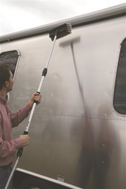Camco RV Flow-Through Wash Brush with Adjustable Handle and Integrated Squeegee