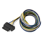 5-Way Flat Wiring Harness; 6 Foot Lead Length; With 6 Foot Ground Wire/ 6 Foot Auxiliary Wire; Conforms to all applicable SAE, NMMA and TMA standards. Has 5' blue wire (auxiliary circuit) & a 4' white wire (ground).